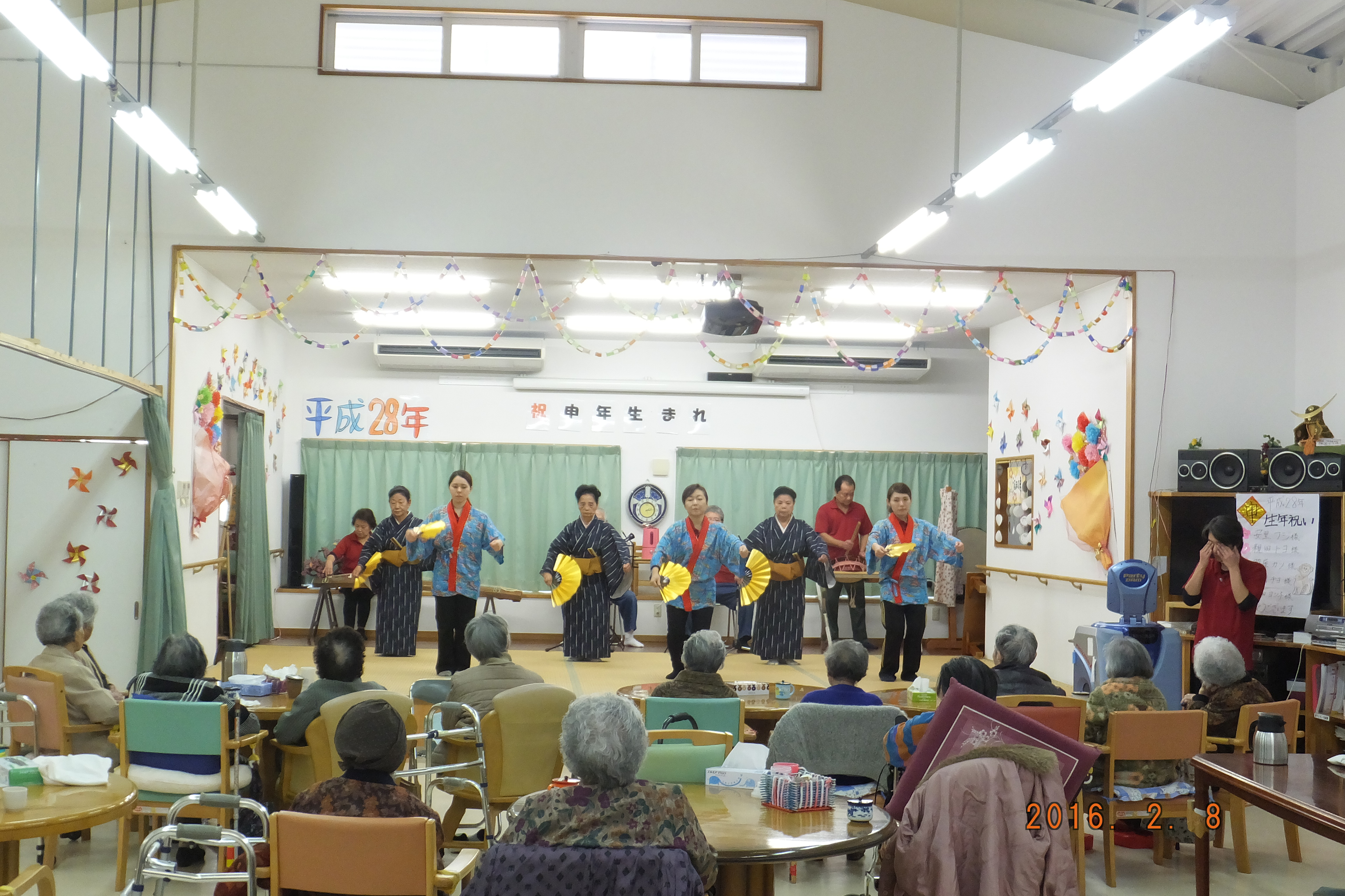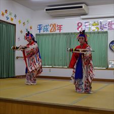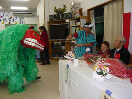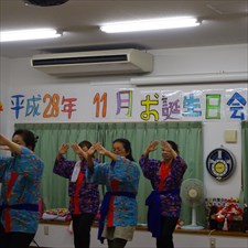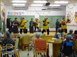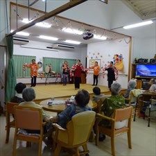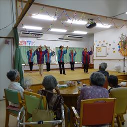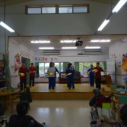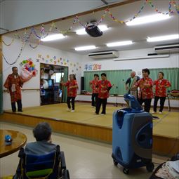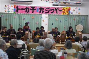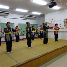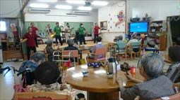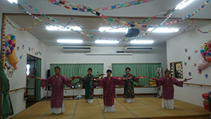 ○12/8(月)14時〜ボランティア具志川火踊会さんが来所され舞台を盛り上げてくれました。