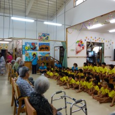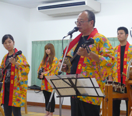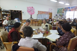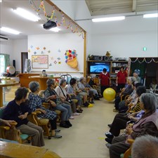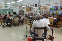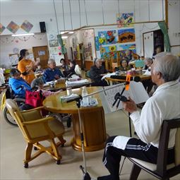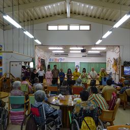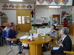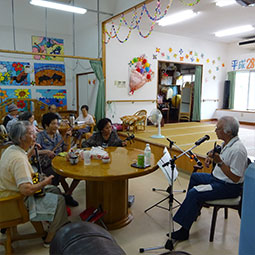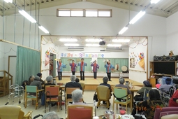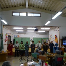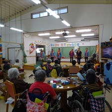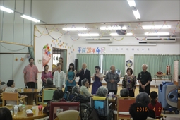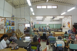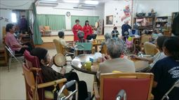 住宅型有料老人ホームうるま荘にて宇堅福音教会の皆様が来てくれました。讃美歌を一緒に歌いました |