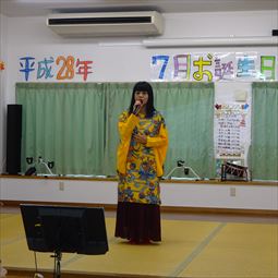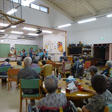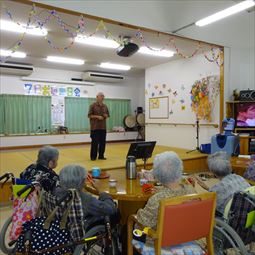 ボランテイア「うるま歌謡友の会」の皆様と楽しく8月の誕生日会を行いました。