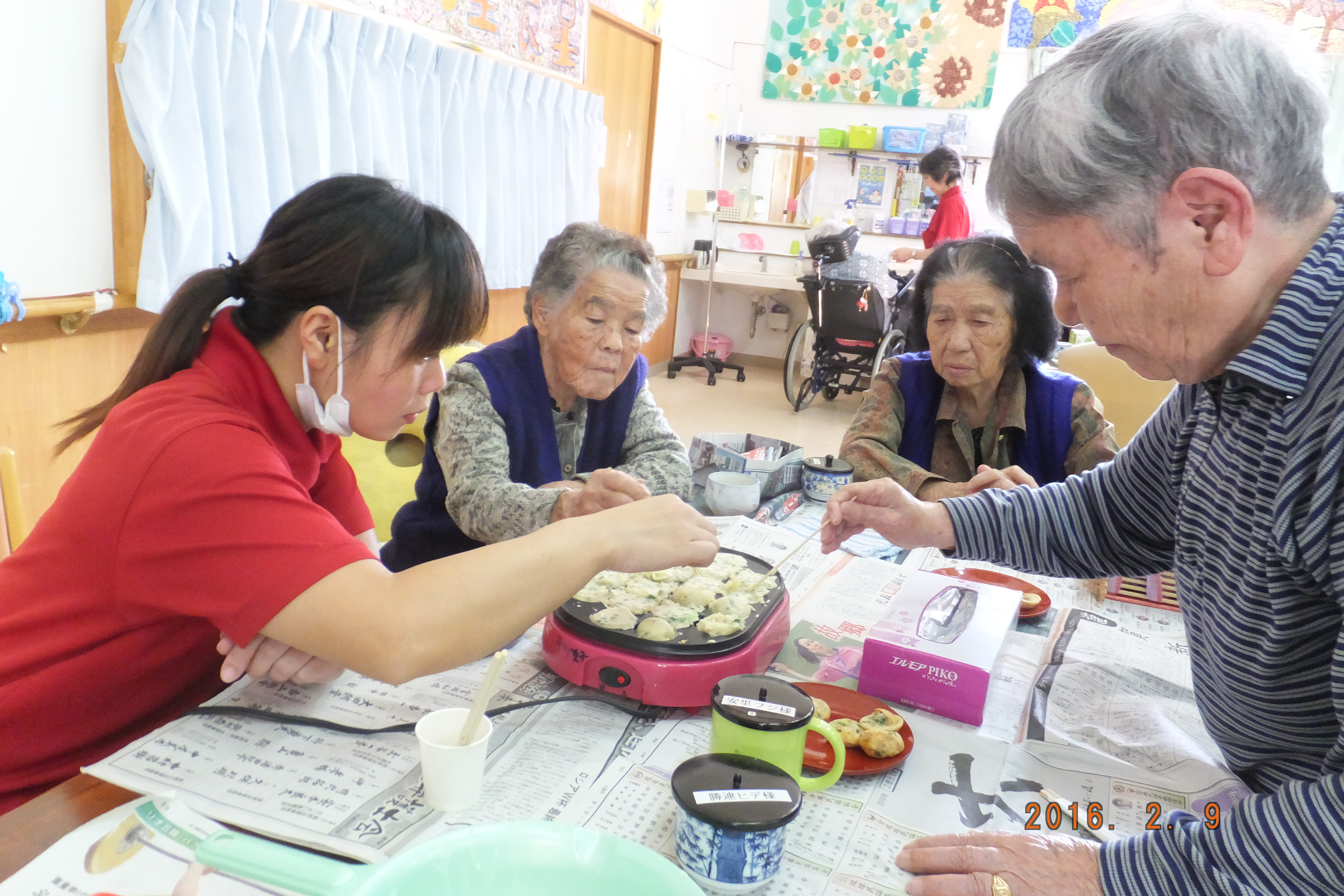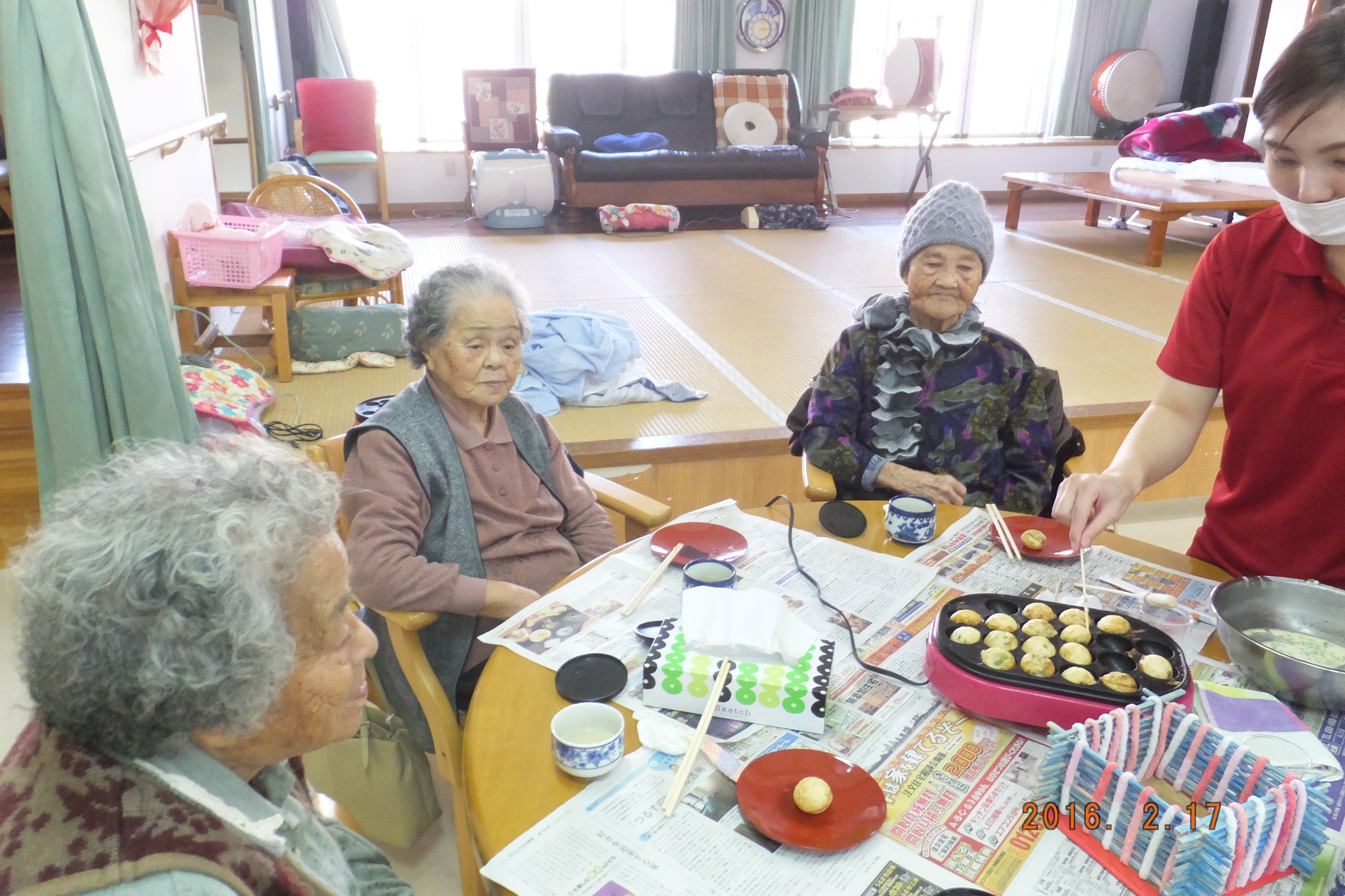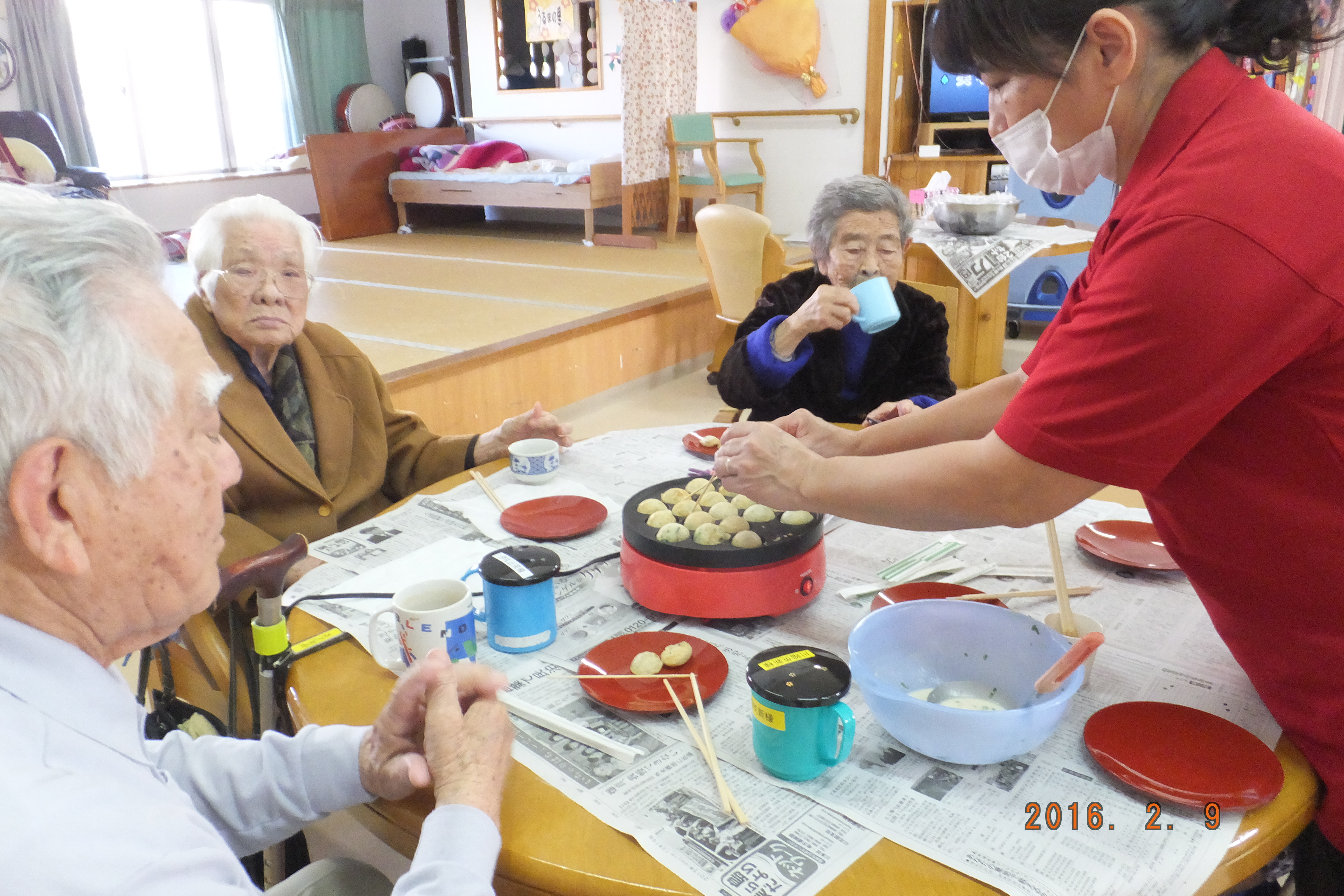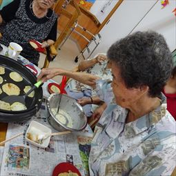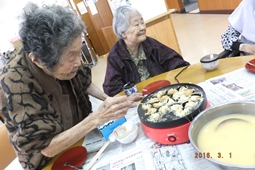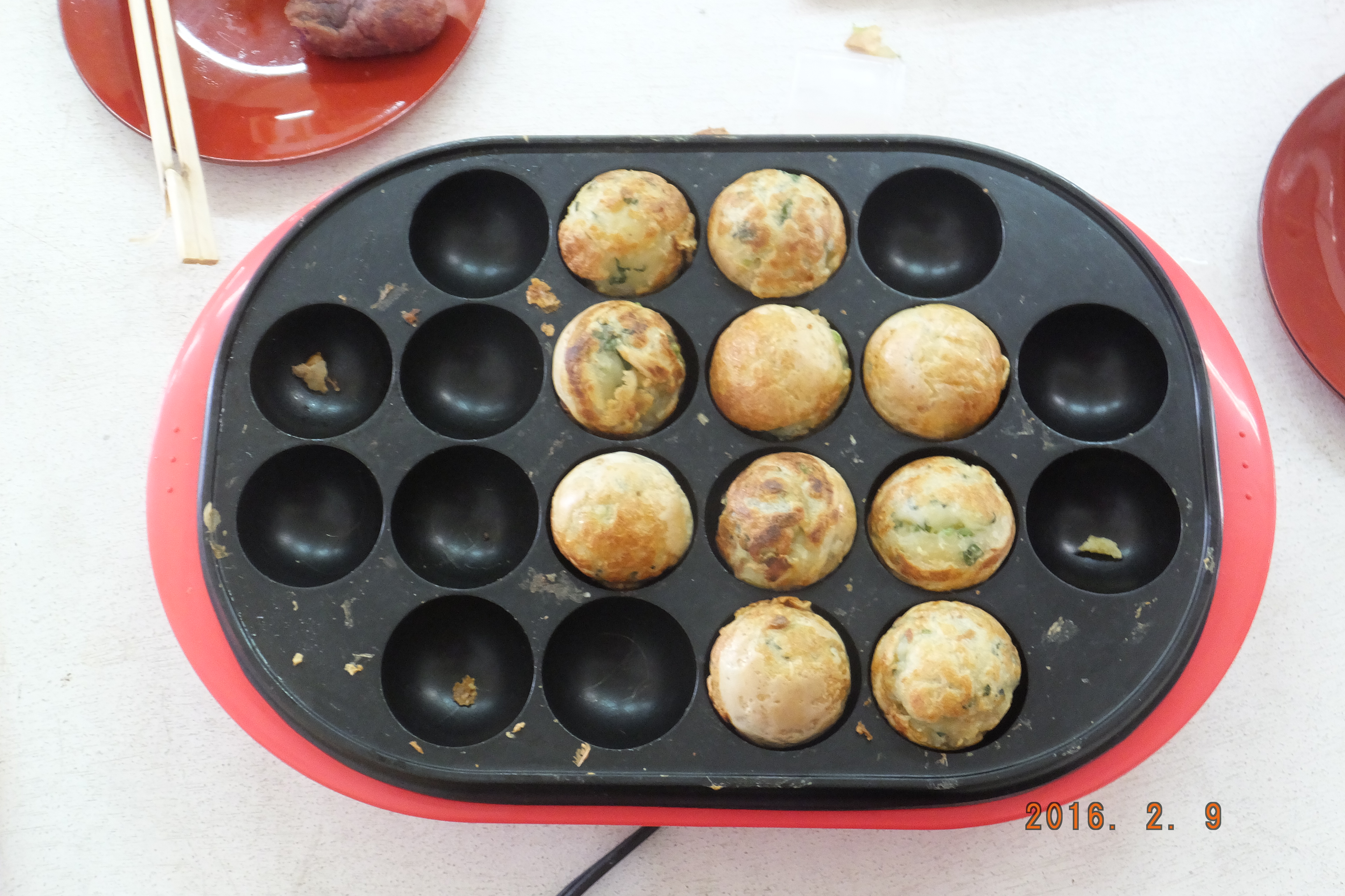 ○12/11(木)おやつパーティー・ホットケーキ。たこ焼き機で作り美味しいおやつを頂きました。