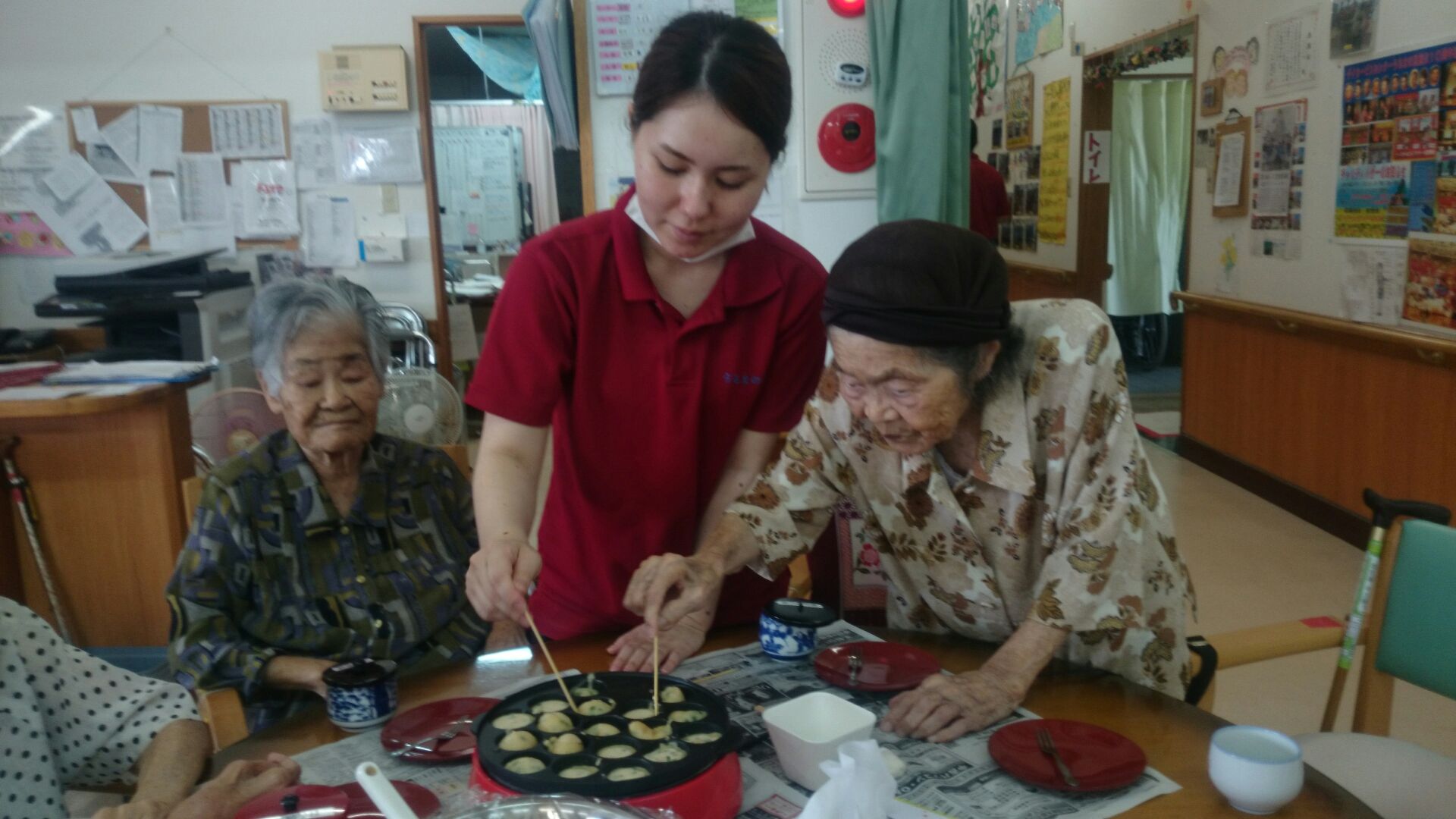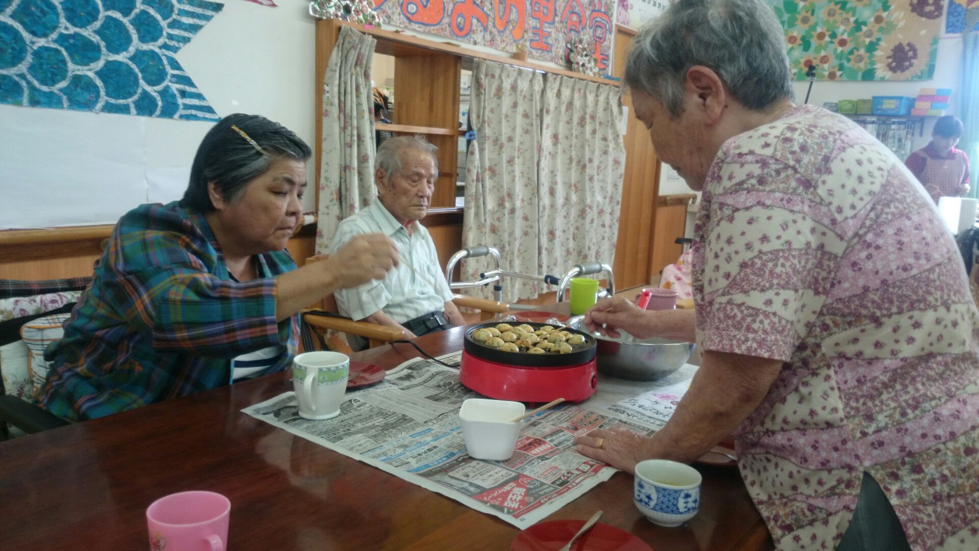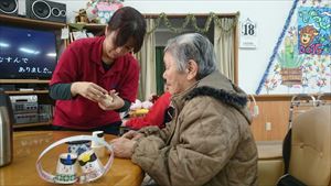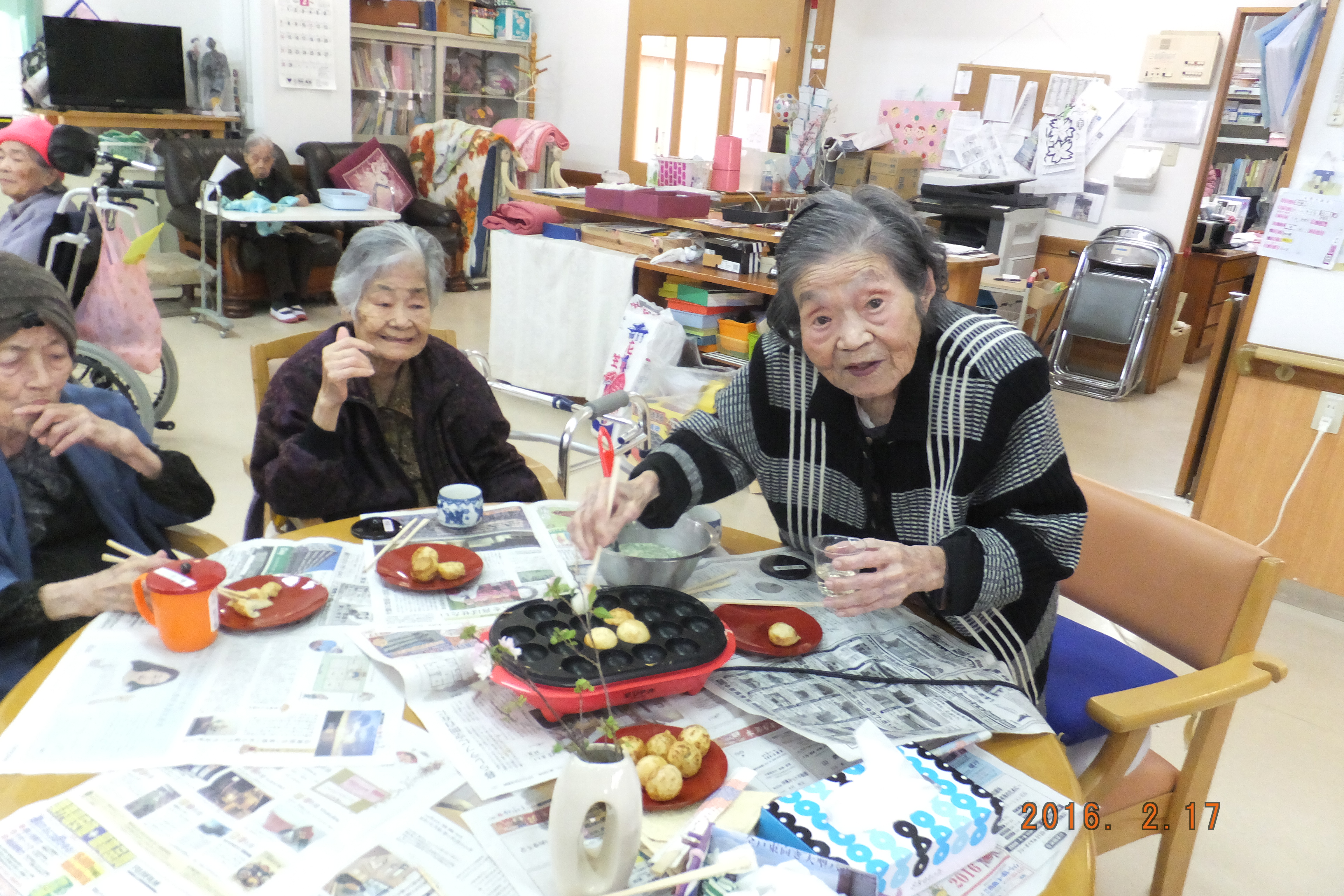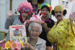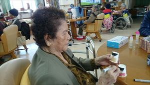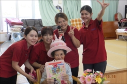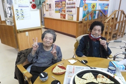 3人の利用者様の誕生日を祝いました、カマドさんは101歳になりました、