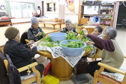 ☆うるまの里の畑で取れた野菜 しまなー☆洗濯物たたみ☆読書☆はりえ☆カラオケ☆おりがみ☆木箱の色塗り☆来年度の干支作り