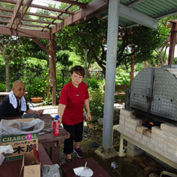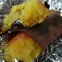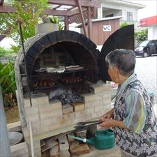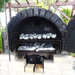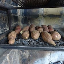 窯で炭火焼き(伊計島産の黄金芋)