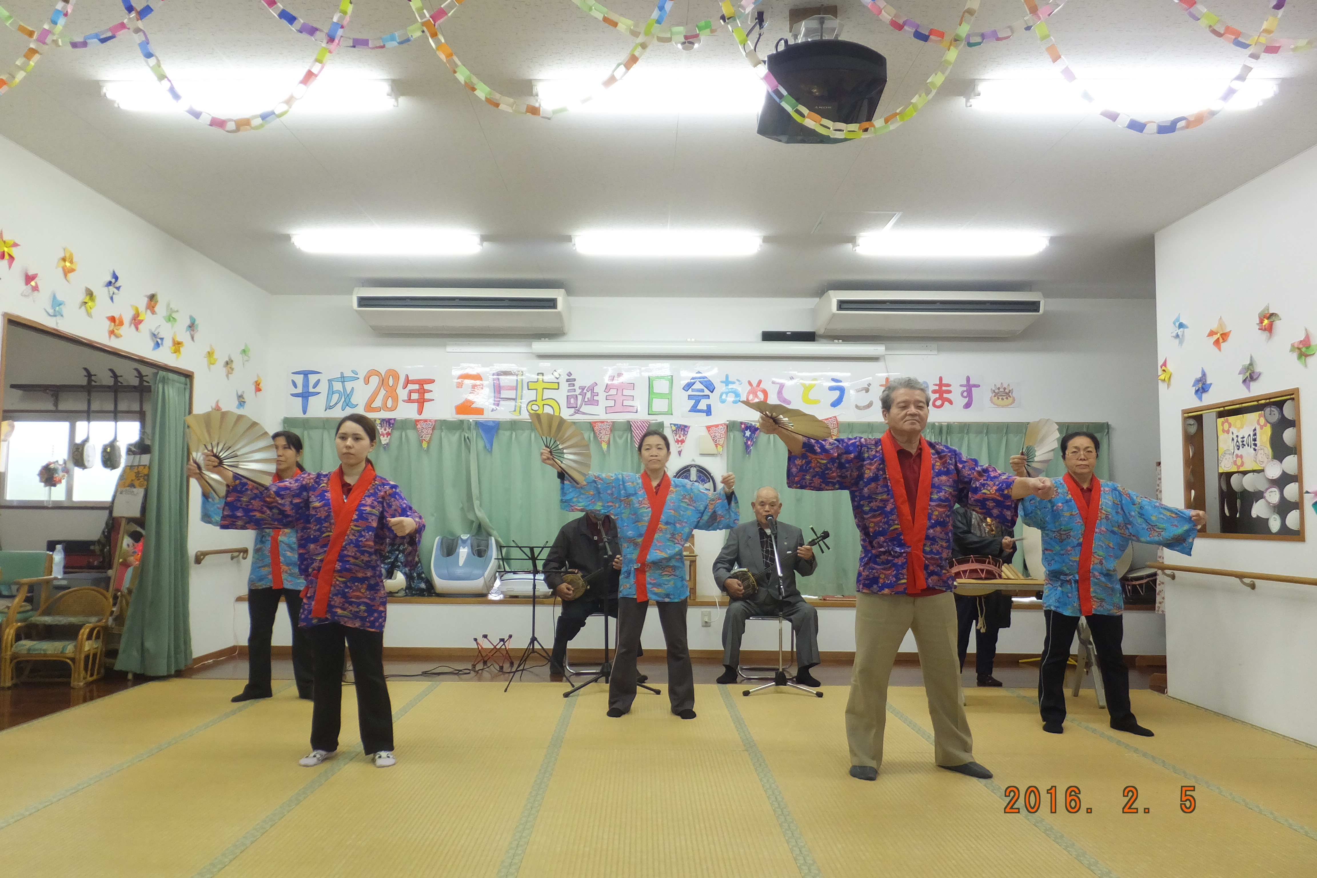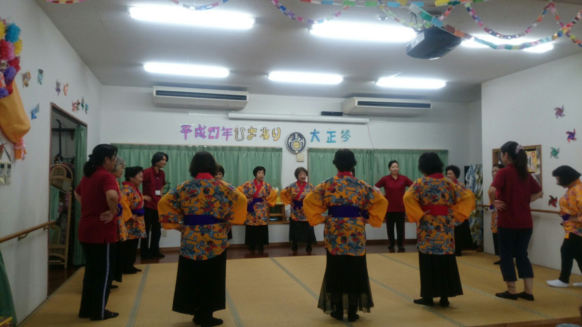 スタッフは、かぎやで風・祝い節・浜千鳥・民謡・ちむがさ節・ようかい体操をやりました!