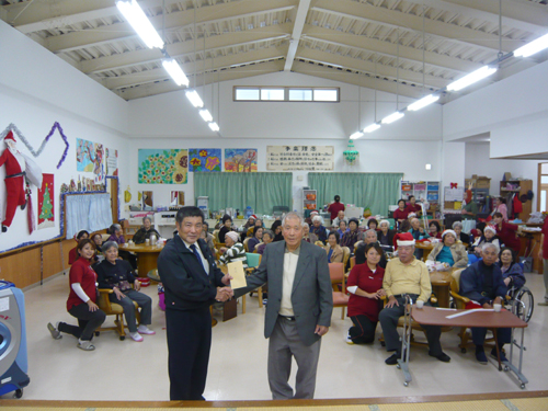 利用者さん代表Y様から手渡し。