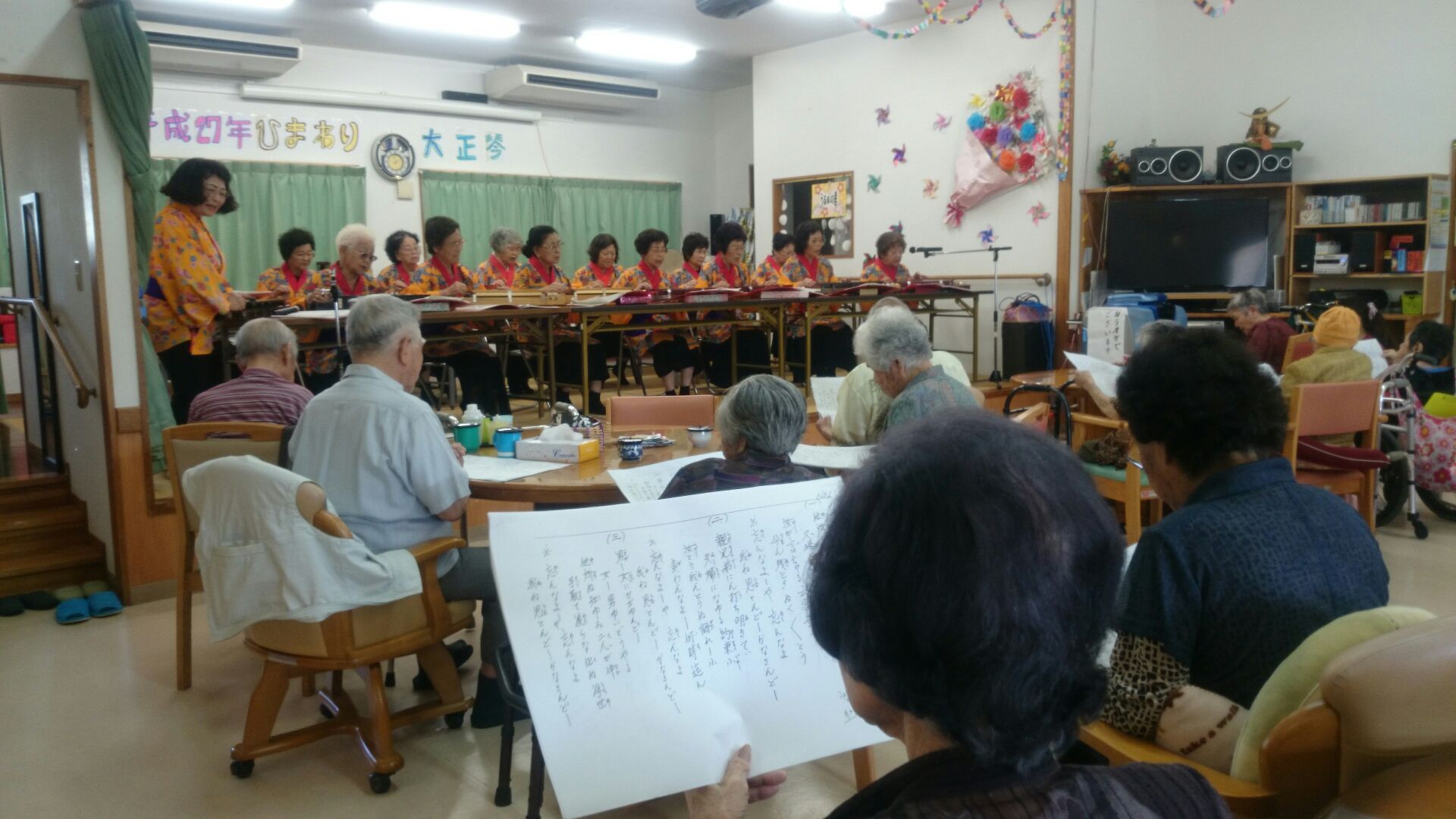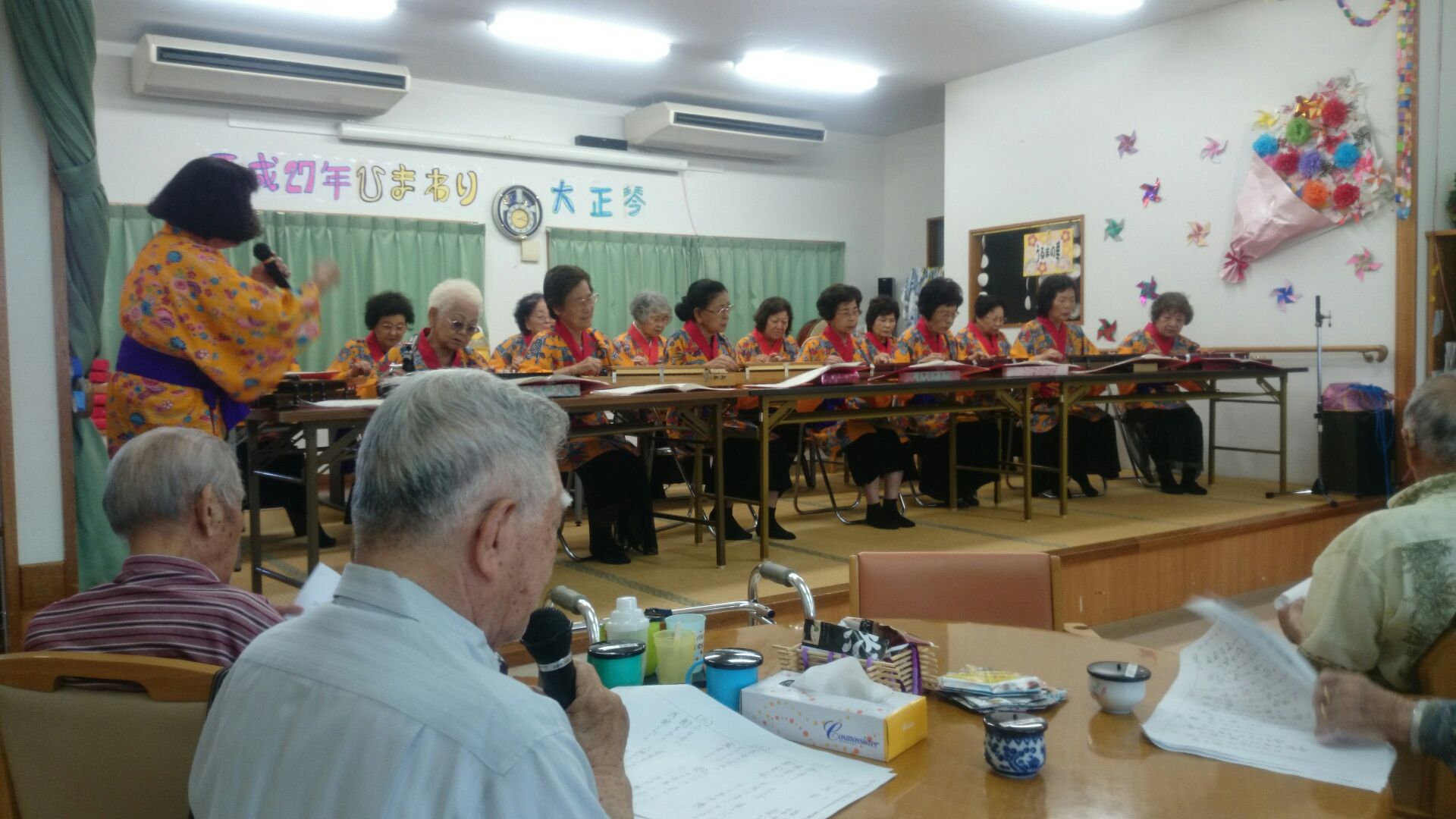 大正琴ひまわり様がボランティアで来て頂きました!!素敵な大正琴の演奏や踊りを披露してくれたました。